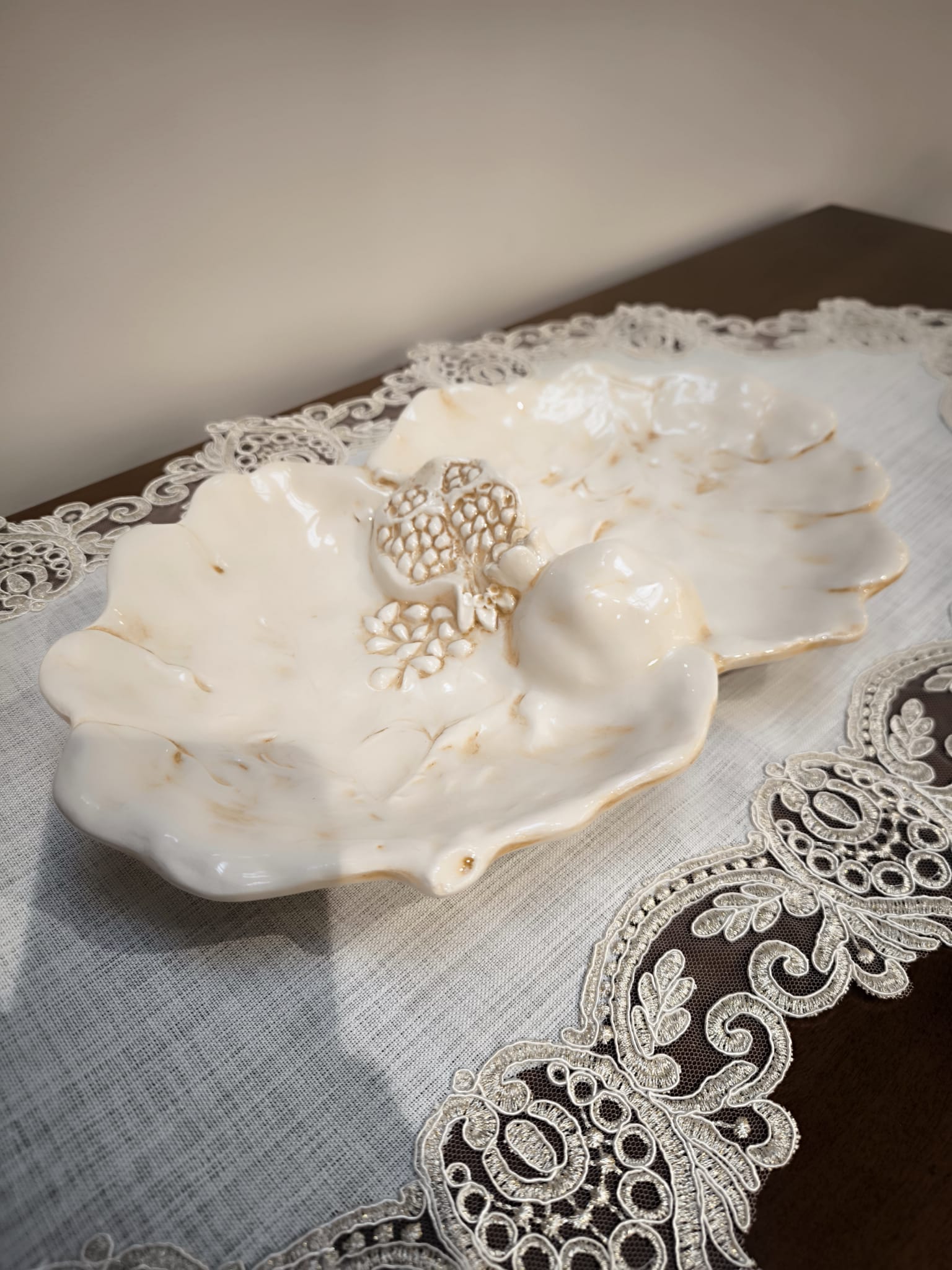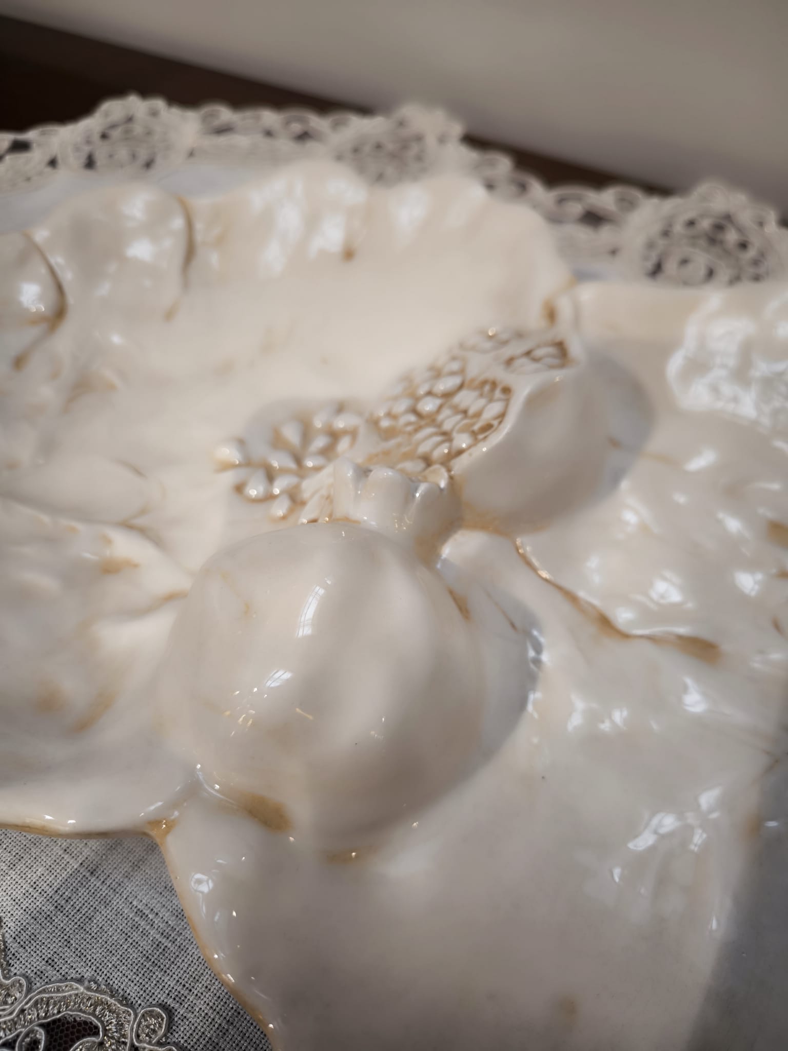 2082 Patera z dekoracją z owocu granatu, biała patynowana (2)