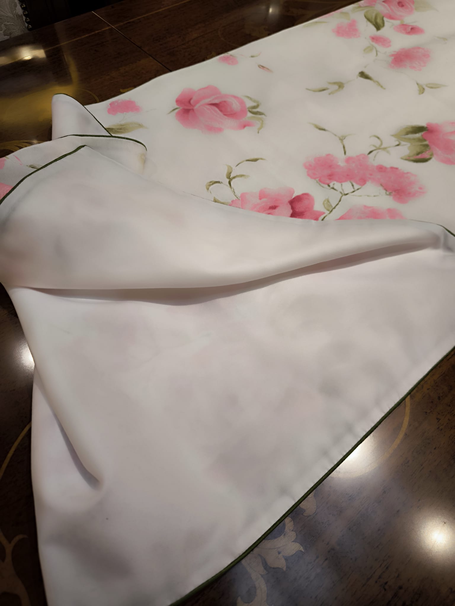 Posiada ozdobną zieloną lamówkę i podszewkę.
