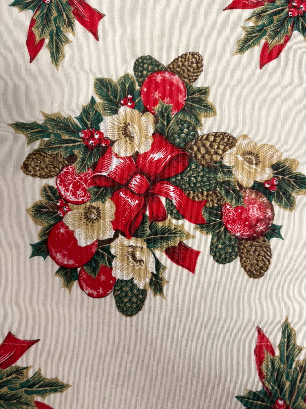 Bieżnik o wymiarach 31×71 cm jest idealny na duże stoły jako stylowe uzupełnienie większych aranżacji. Został starannie uszyty, posiada podszewkę zapewniającą trwałość i lepsze układanie się materiału. Wykończenie kontrastową lamówką dodaje mu szyku i podkreśla jego świąteczny charakter.