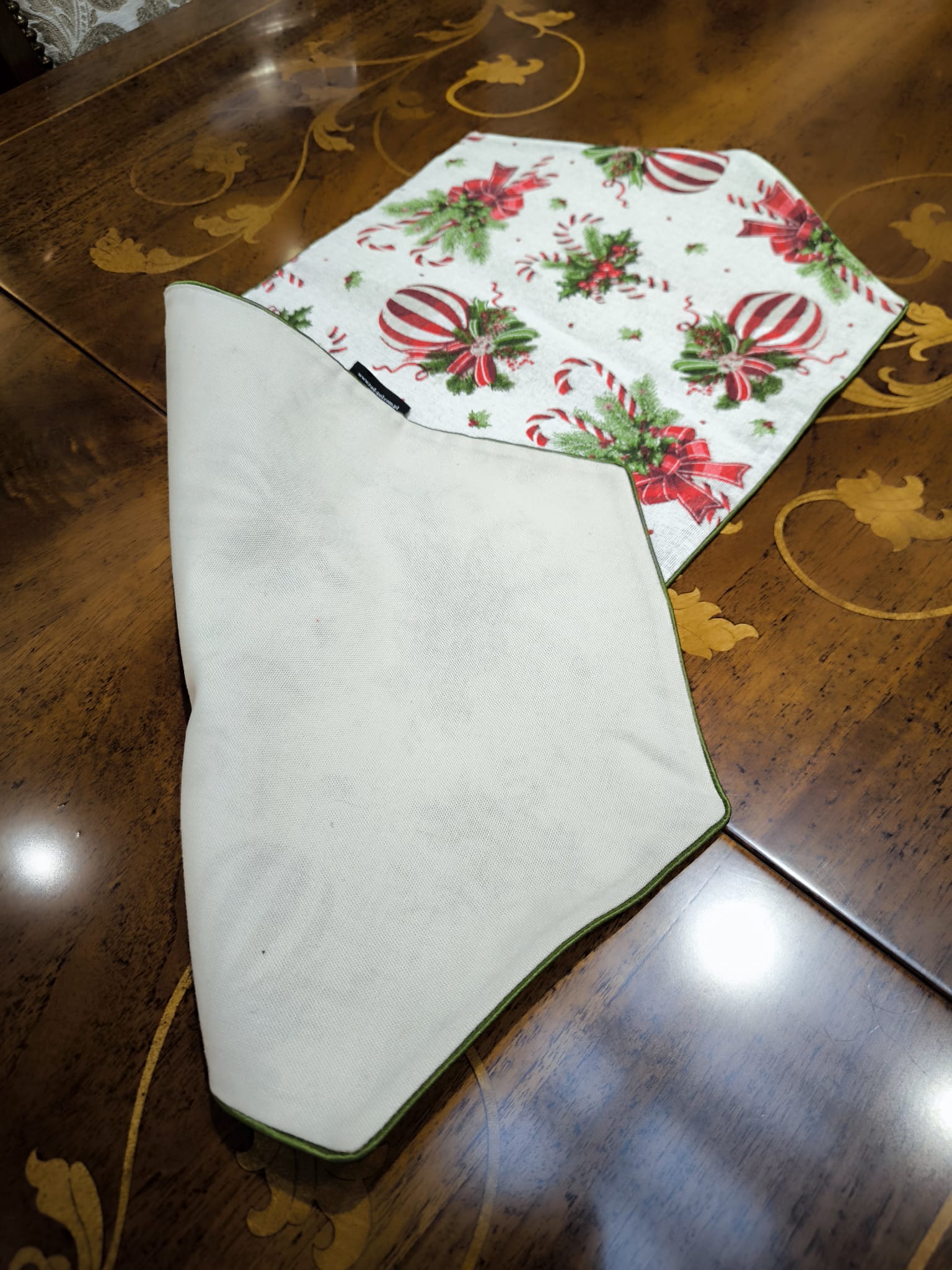 Bieżnik o wymiarach 30×70 cm jest idealny na małe stoły lub jako stylowe uzupełnienie większych aranżacji. Został starannie uszyty, posiada podszewkę zapewniającą trwałość i lepsze układanie się materiału. Wykończenie kontrastową lamówką dodaje mu szyku i podkreśla jego świąteczny charakter.