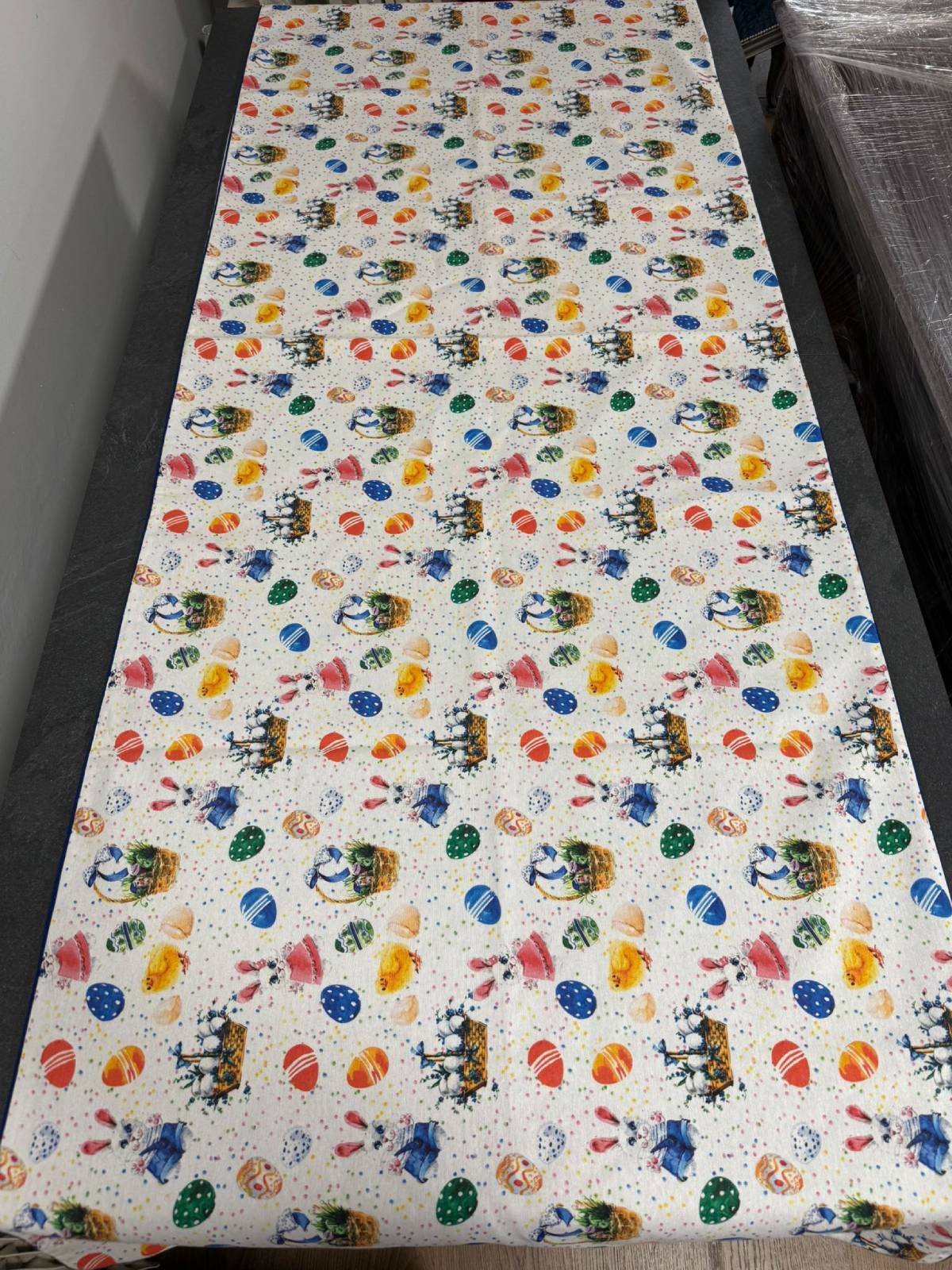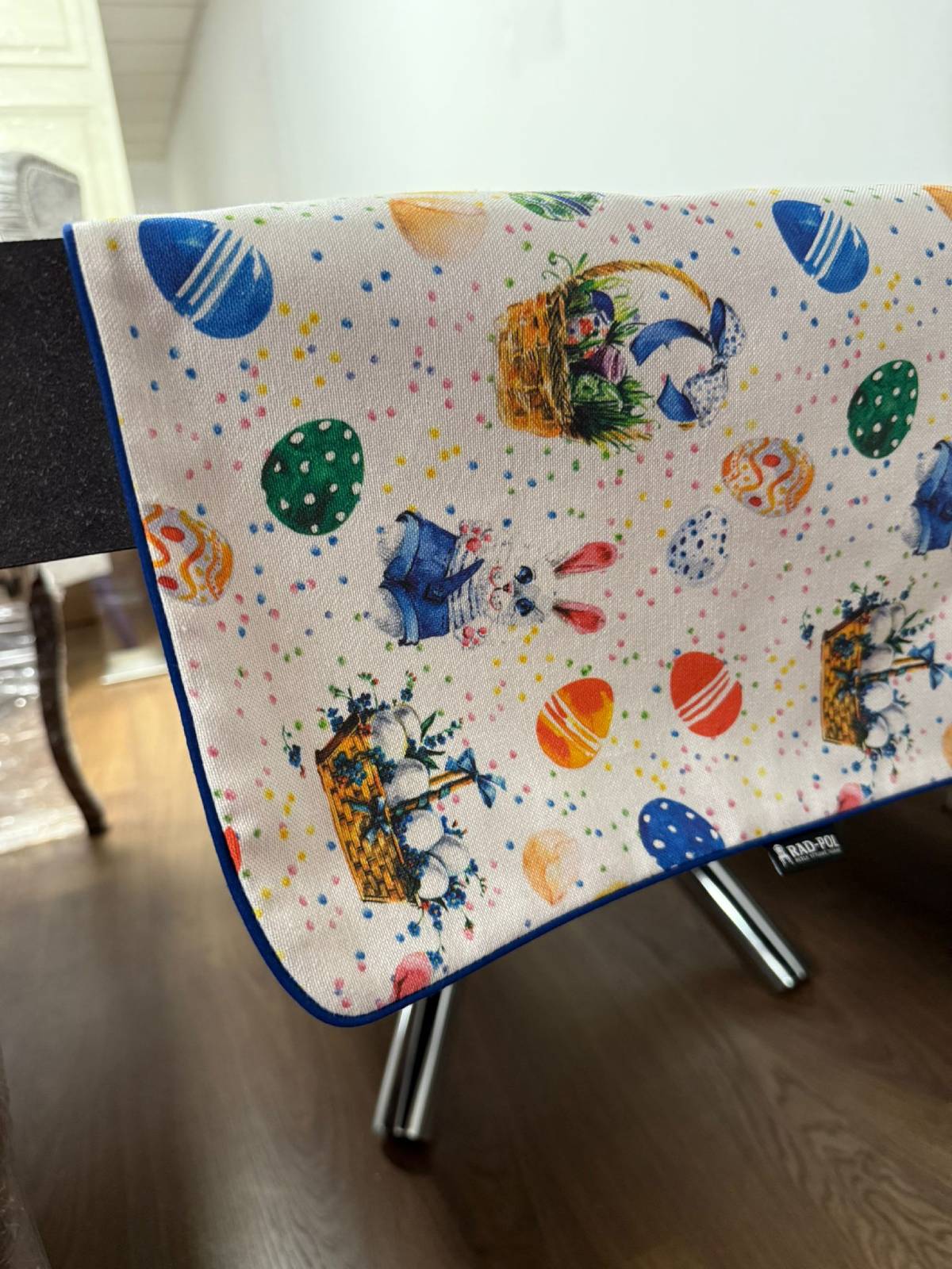 Wprowadź świąteczny nastrój do swojego domu dzięki wyjątkowemu bieżnikowi wielkanocnemu! Ten elegancki dodatek w klasycznej kolorystyce bieli z kolorowymi wiosennymi dodatkami został ozdobiony uroczymi motywami świątecznymi takimi jak króliczki, kurczaczki, jajeczka, koszyczki, palemki.