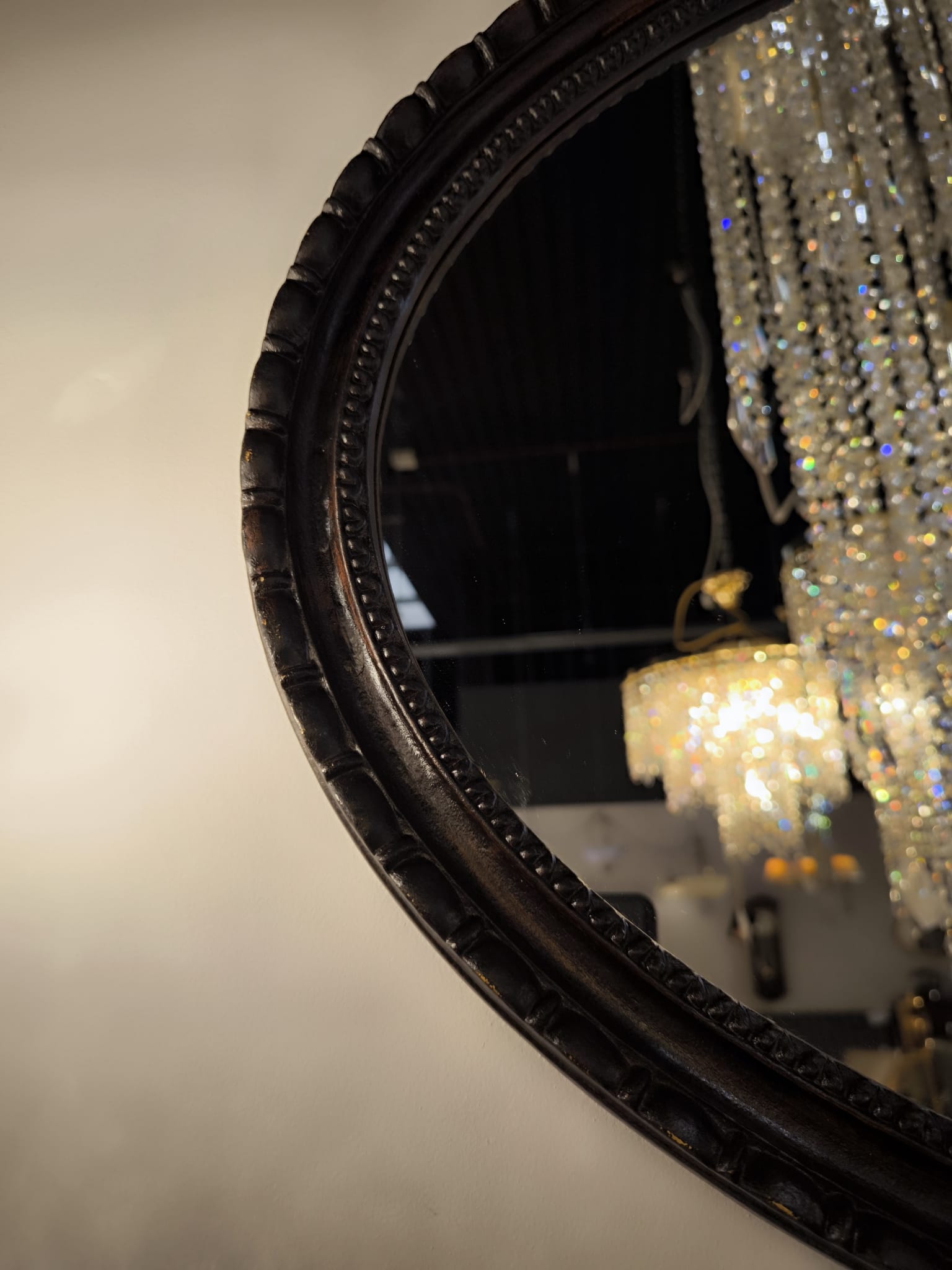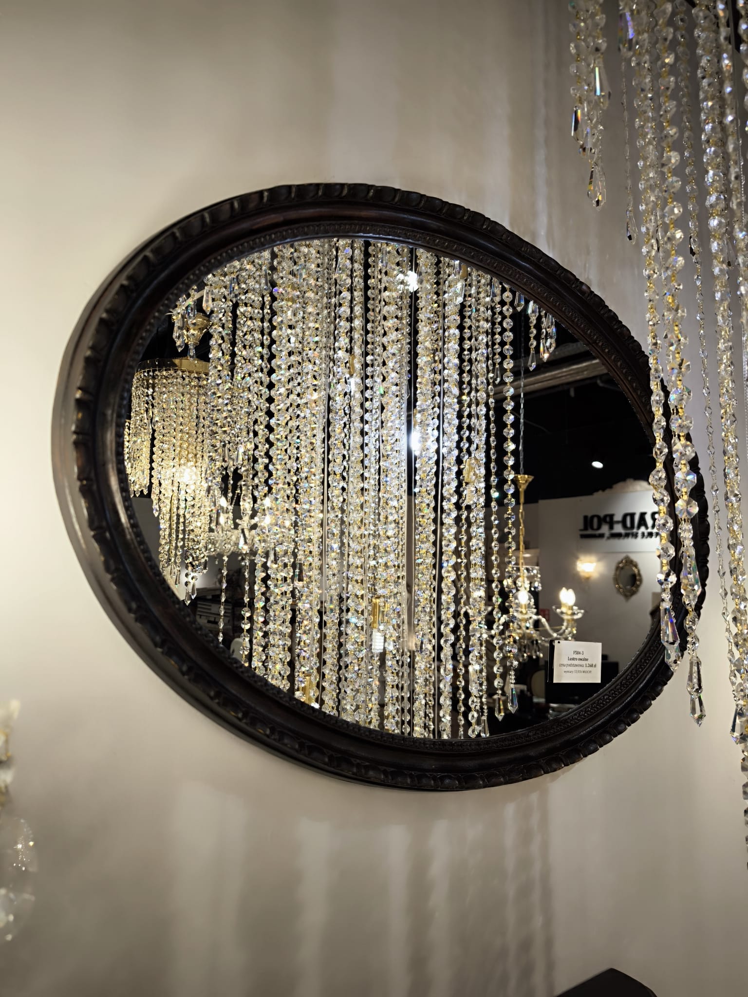 Stylowe lustro owalne F504 to kwintesencja włoskiego designu i klasycznej elegancji. Rama wykonana z masy drzewnej w kolorze ciemnego orzecha zachwyca subtelnym zdobieniem i ponadczasowym charakterem.