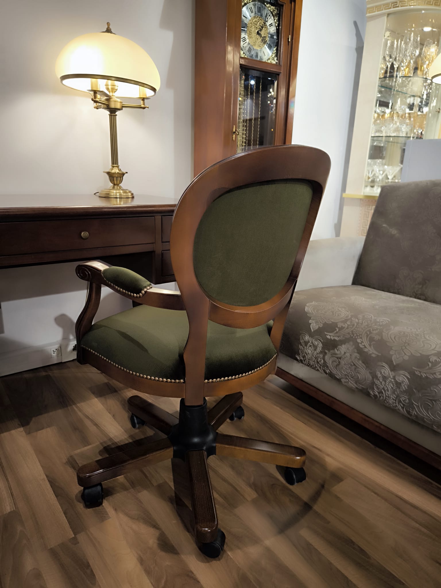 Ponadto wyjątkowy design fotela sprawia, że doskonale komponuje się z klasycznym stylem wnętrza, dodając mu wyrafinowanego charakteru. Czy to w biurze, gabinecie czy w przestrzeni domowego biura, nasz klasyczny fotel obrotowy będzie nie tylko praktycznym, ale również stylowym dodatkiem do Twojej przestrzeni.