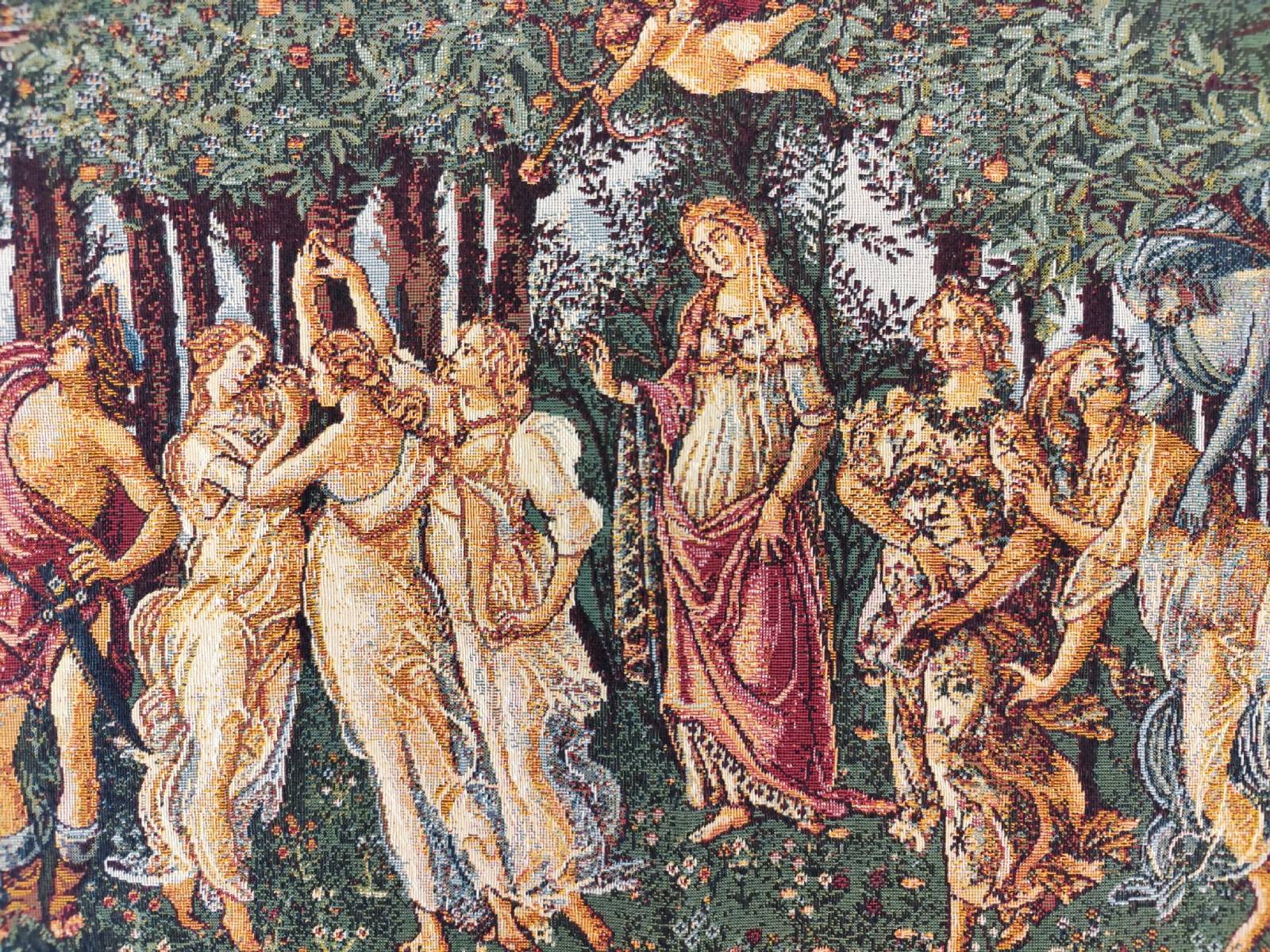 Gobelinowe obrazy były kiedyś główną dekoracją wnętrza wielowiekowych pałaców i salonów. Nasz ścienny gobelin La Primavera to propozycja dla tych klientów, którzy lubią klasyczny, tradycyjny styl wnętrza domu. Taki obrazek gobelinowy w sypialni lub w salonie sprawi pomieszczeniu wyjątkowego charakteru.