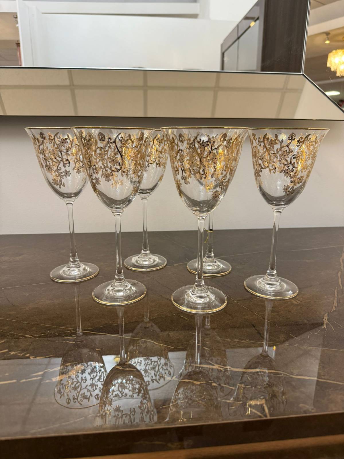 Zdobienie kieliszków złotem nadaje im niepowtarzalny blask i elegancję. Drobne detale zdobienia dodają wyjątkowego charakteru i luksusowego wykończenia.