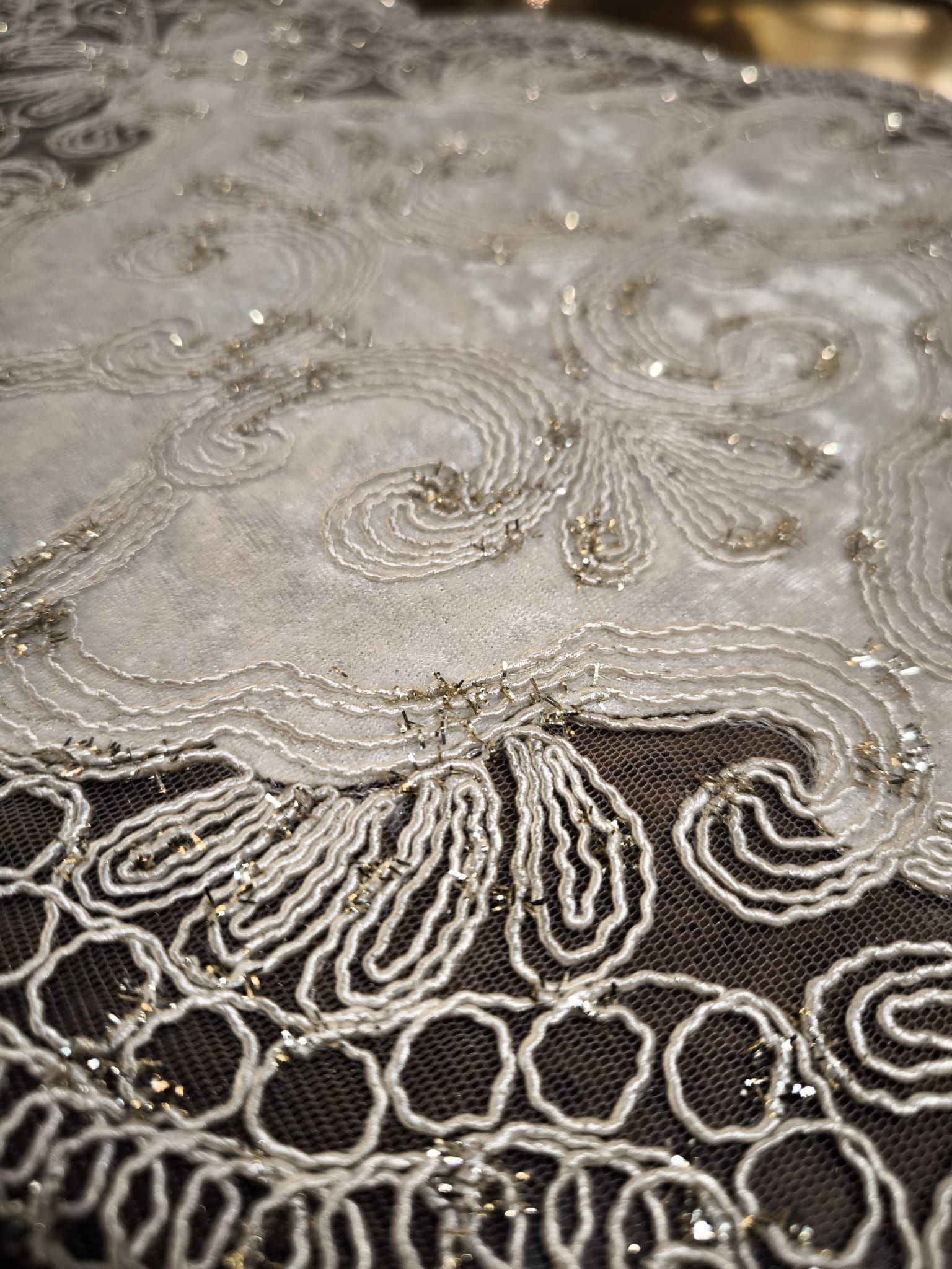Gipiura została dodatkowo ozdobiona złotą nitką, co daje delikatny połysk i podkreśla