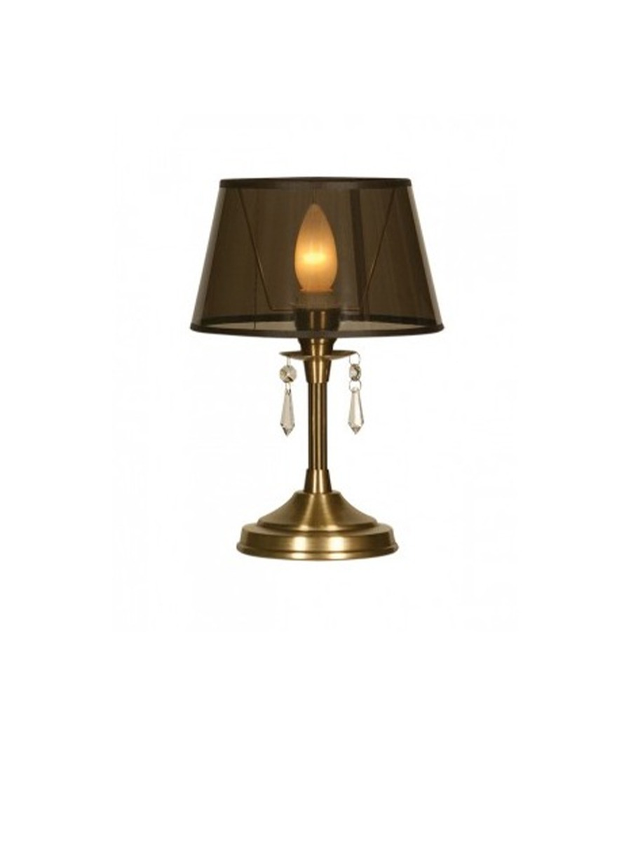 Elegancka lampka wykonana z mosiądzu oraz przydymionego klosza ze sztucznego tworzywa.