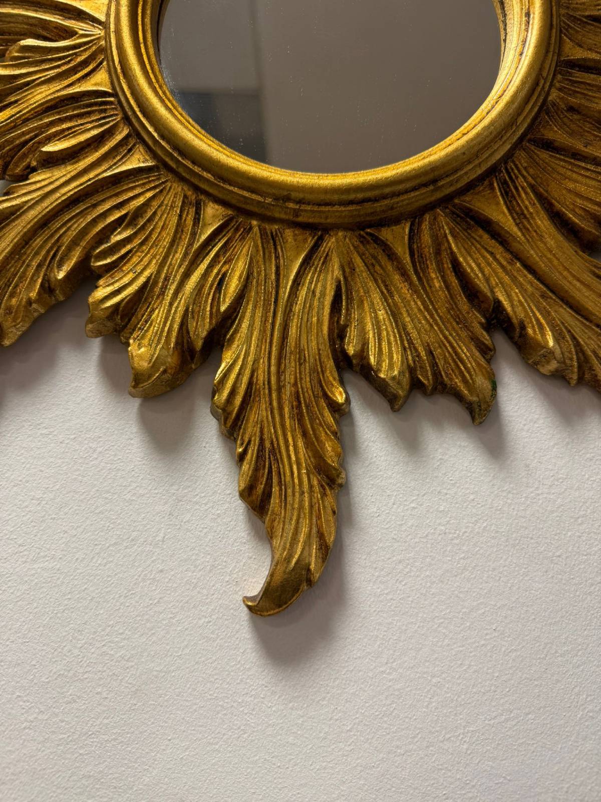 Rzeźbiona Rama: Subtelność i Elegancja: Rama lustra S0048-1 została mistrzowsko wykończona, imitując promienie słoneczne. Ta delikatna rzeźba nadaje lustru niezwykłej głębi i subtelności, tworząc efekt, który przyciąga wzrok i dodaje wyrafinowanego uroku do przestrzeni. Dodatkowo, pokrycie ramy złotym szlagmetalem podkreśla jej elegancję i luksusowy wygląd, nadając lustru wyjątkowego blasku.