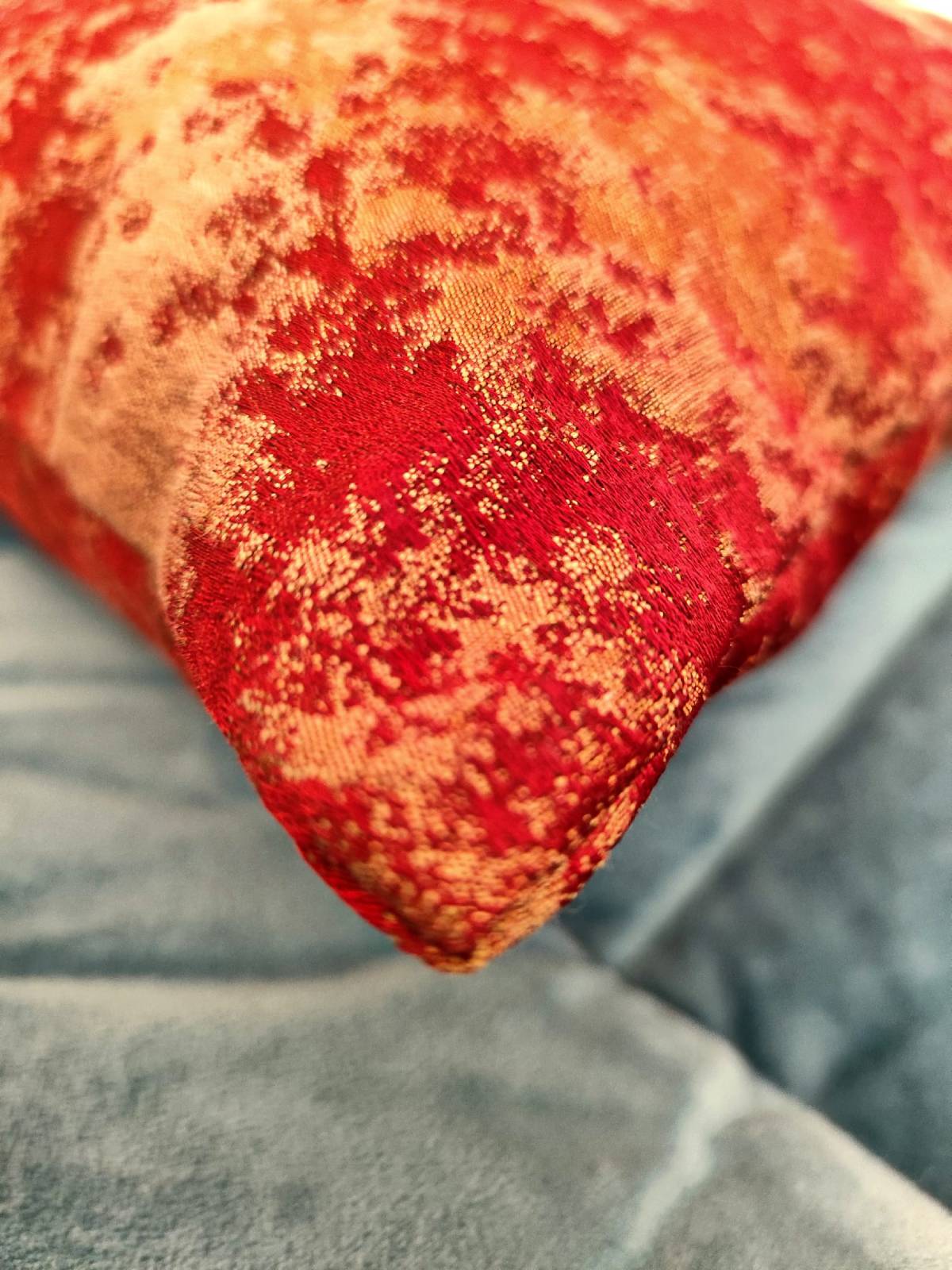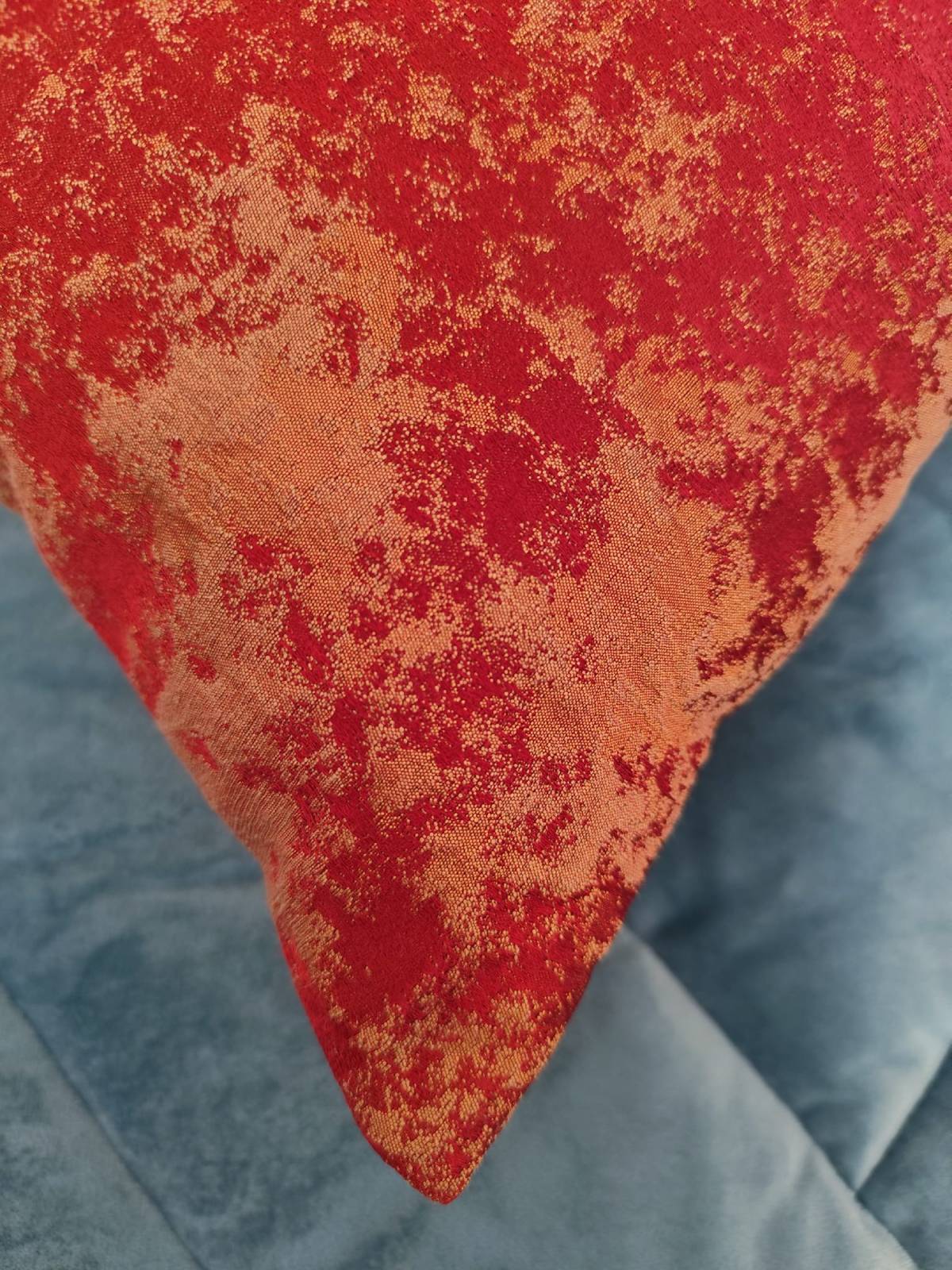 Poduszka 50×50 wykonana z włoskiej tkaniny w kolorach czerwieni. Posiada suwak umożliwiający pranie poszewki. Wypełnienie mieszanką pianki i silikonu nadaje sprężystości i trwałości tej uniwersalnej dekoracji sofy lub fotela.