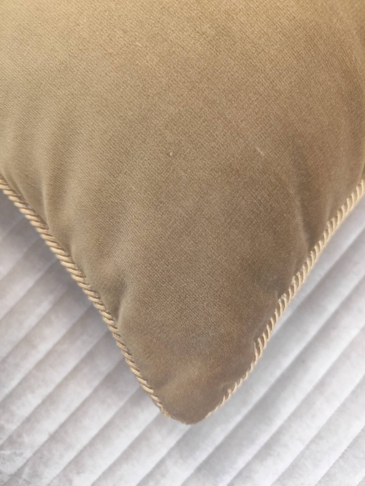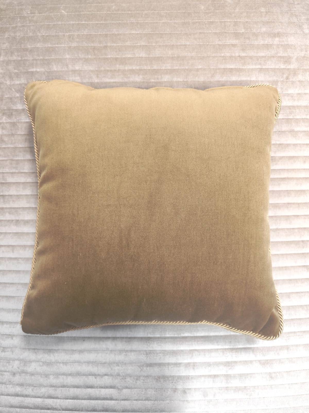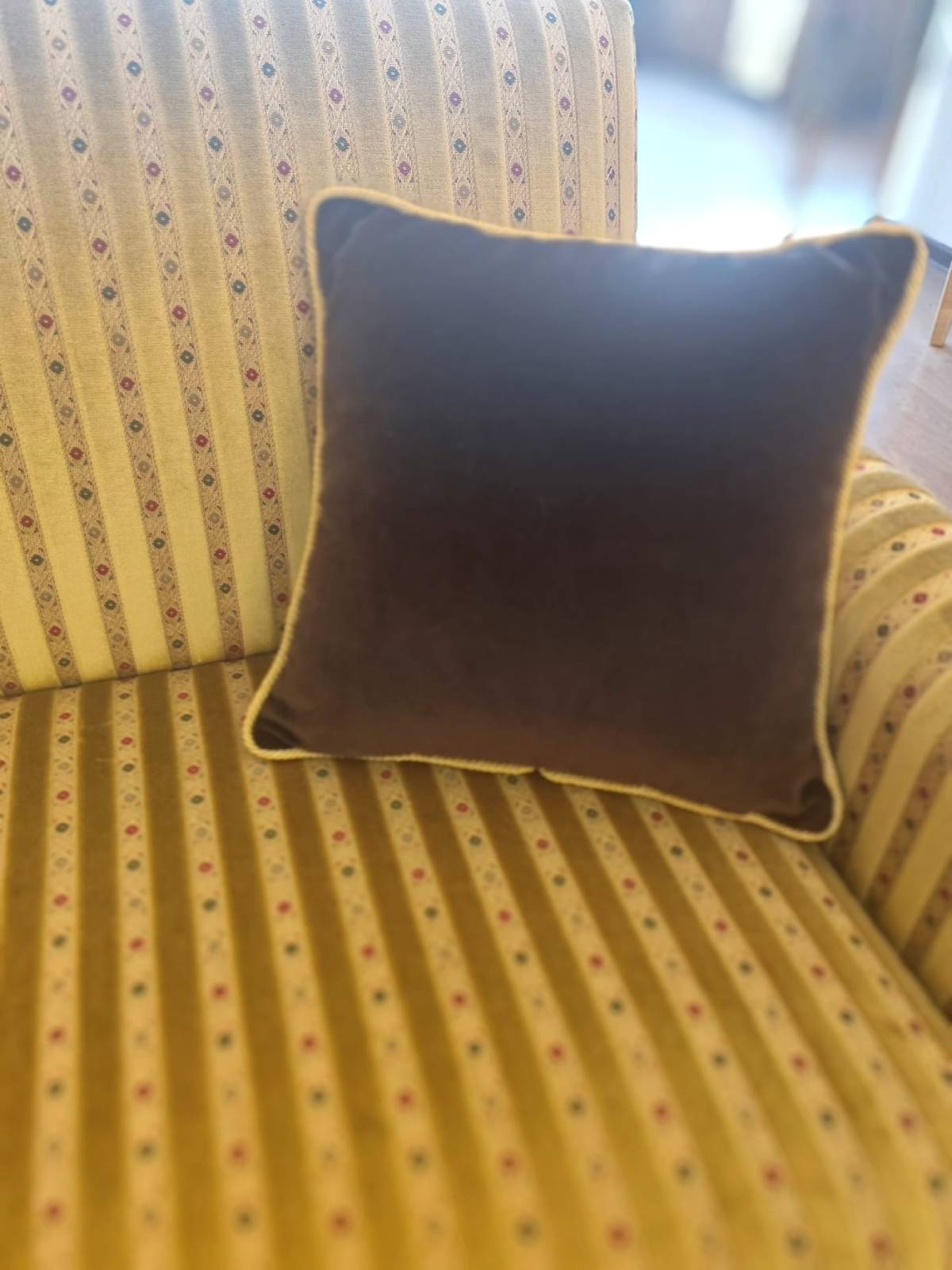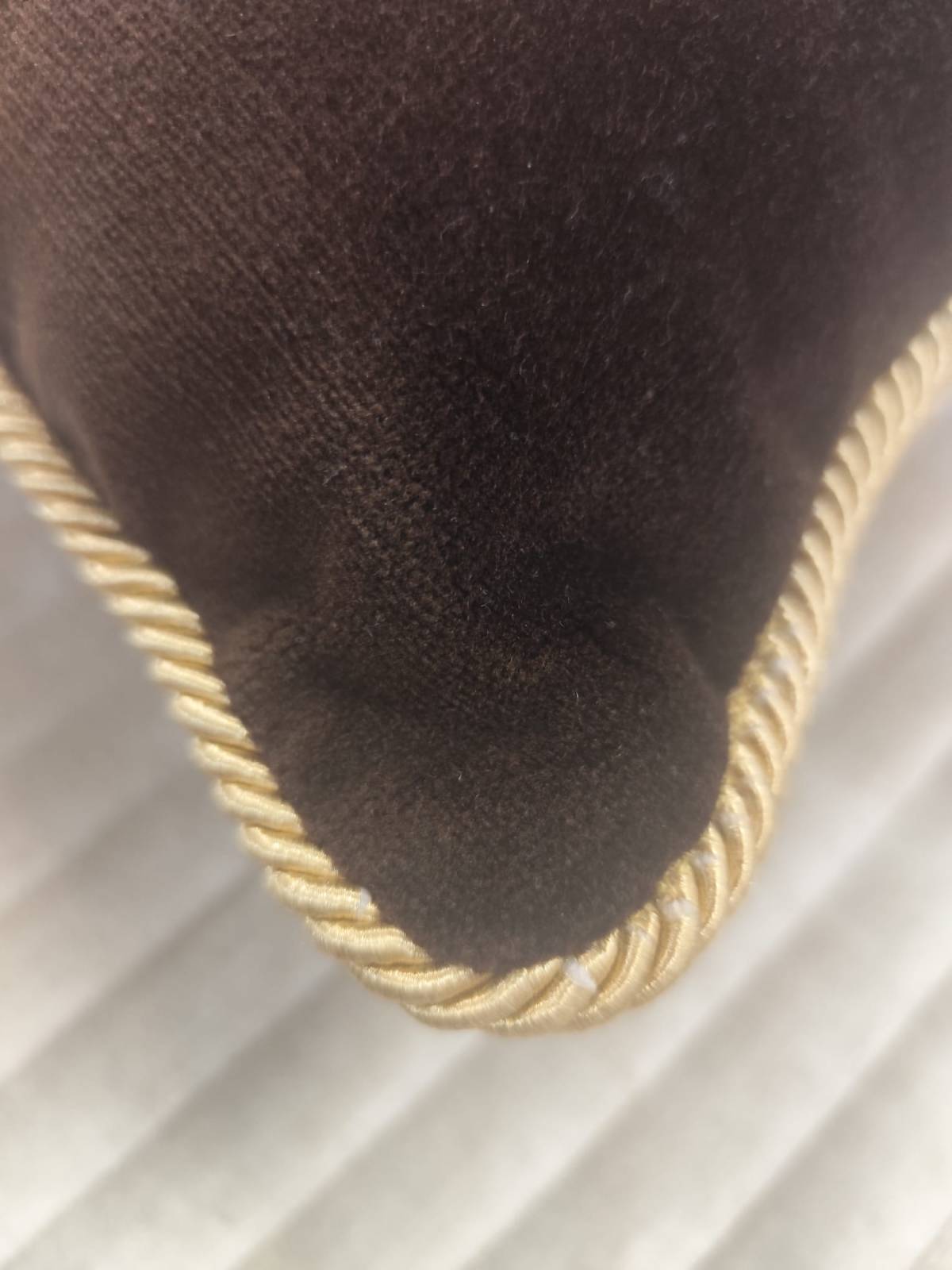Poduszka 50×50 w pluszowej tkaninie z jednej strony brąz czekoladowy a z drugiej miodowa. Wypełnienie mieszanką pianki i silikonu nadaje sprężystości i trwałości tej uniwersalnej dekoracji sofy lub fotela.
