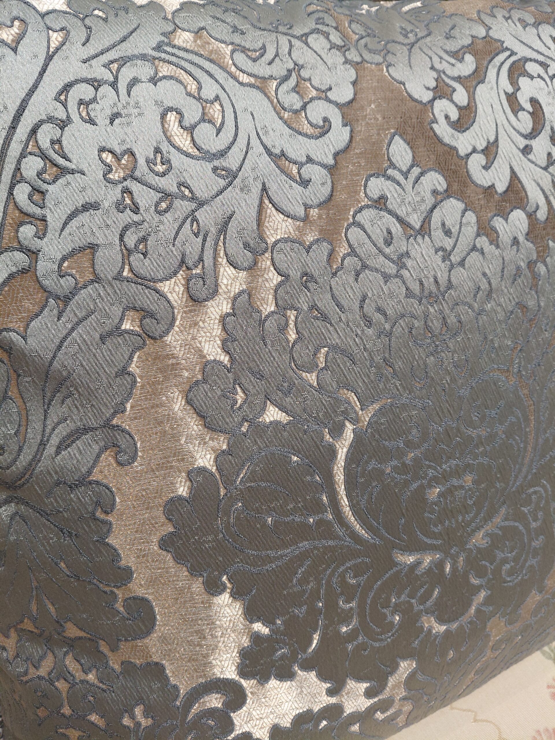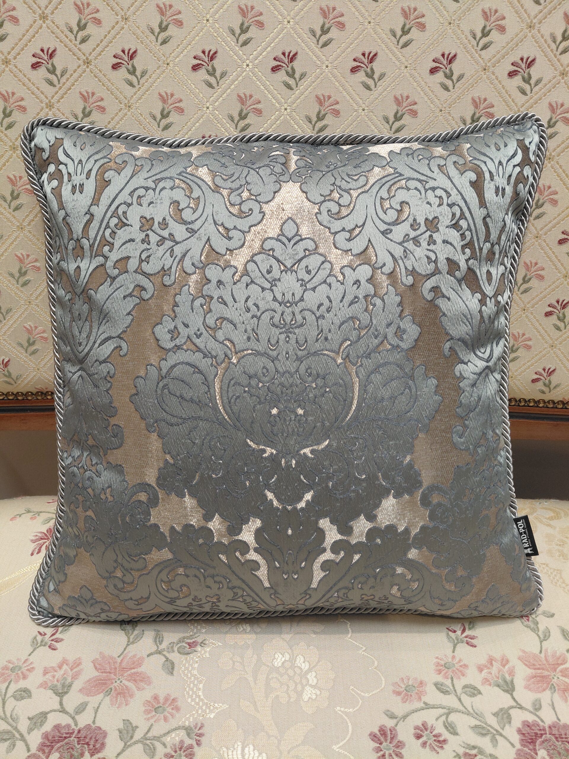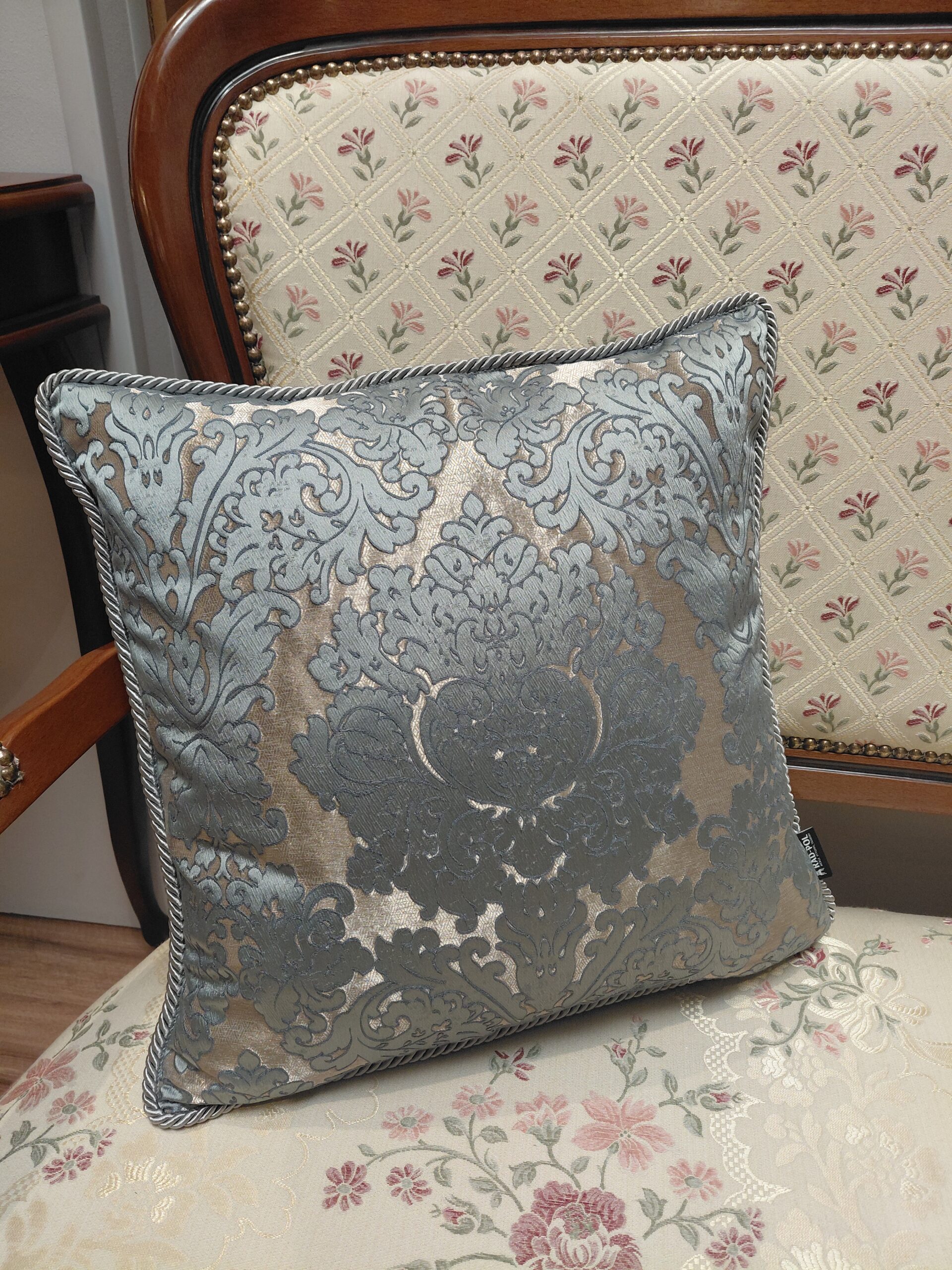Poduszka w kolorze złoto- niebieskim z wyraźnym medalionem