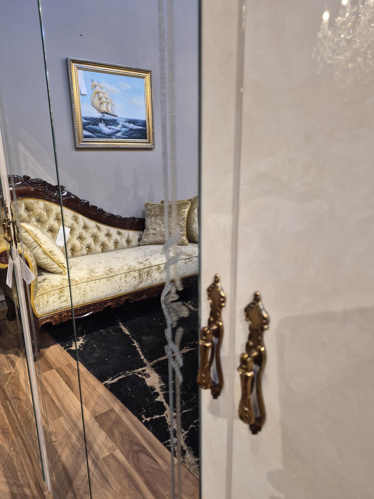 Każdy element zestawu Barocco został zaprojektowany tak, aby tworzyć harmonijną i elegancką całość. Łóżko z wysokim wezgłowiem stanowi centralny punkt sypialni, zapewniając wygodę i reprezentacyjny wygląd. Szafki nocne oferują praktyczne miejsce na podręczne przedmioty, a pojemna, 6-drzwiowa szafa umożliwia komfortowe przechowywanie odzieży i dodatków.