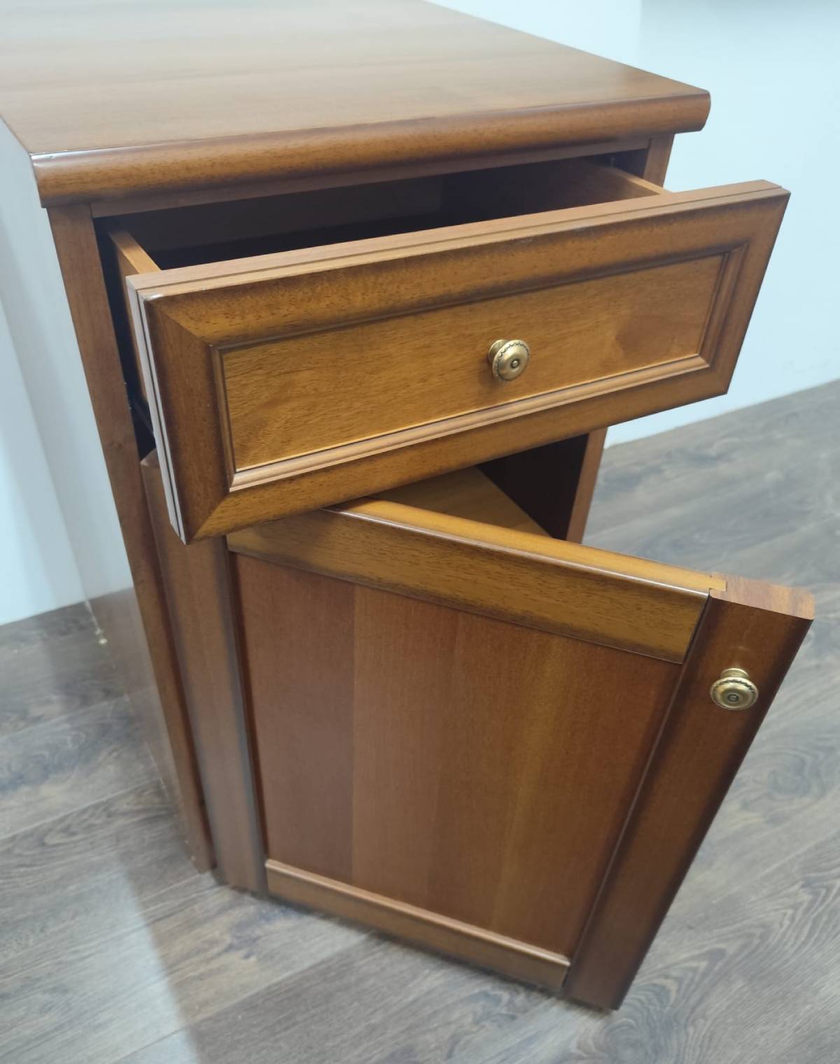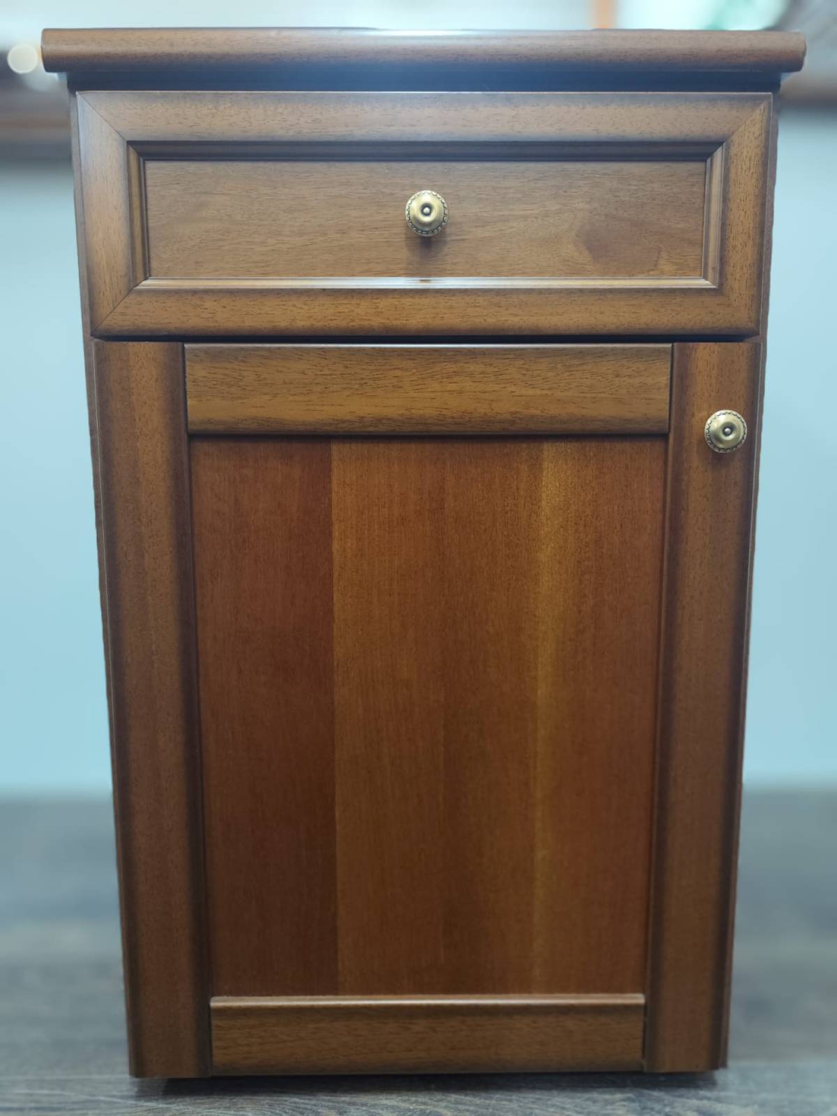 Szafka to wyjątkowy mebel Włoskiej produkcji. Utrzymana jest w stylu klasycznym a prosta forma pozwala wpasować się jej w różne wnętrza. Jej piękny kolor głębokiego brązu pasuje do wielu aranżacji. Mebel zapewni nie tylko przestrzeń do przechowywania ale posiada również ogromne walory estetyczne i będzie ozdobą każdej sypialni. Szafka posiada dodatkowy otwór na bocznej ściance widoczny na zdjęciu.