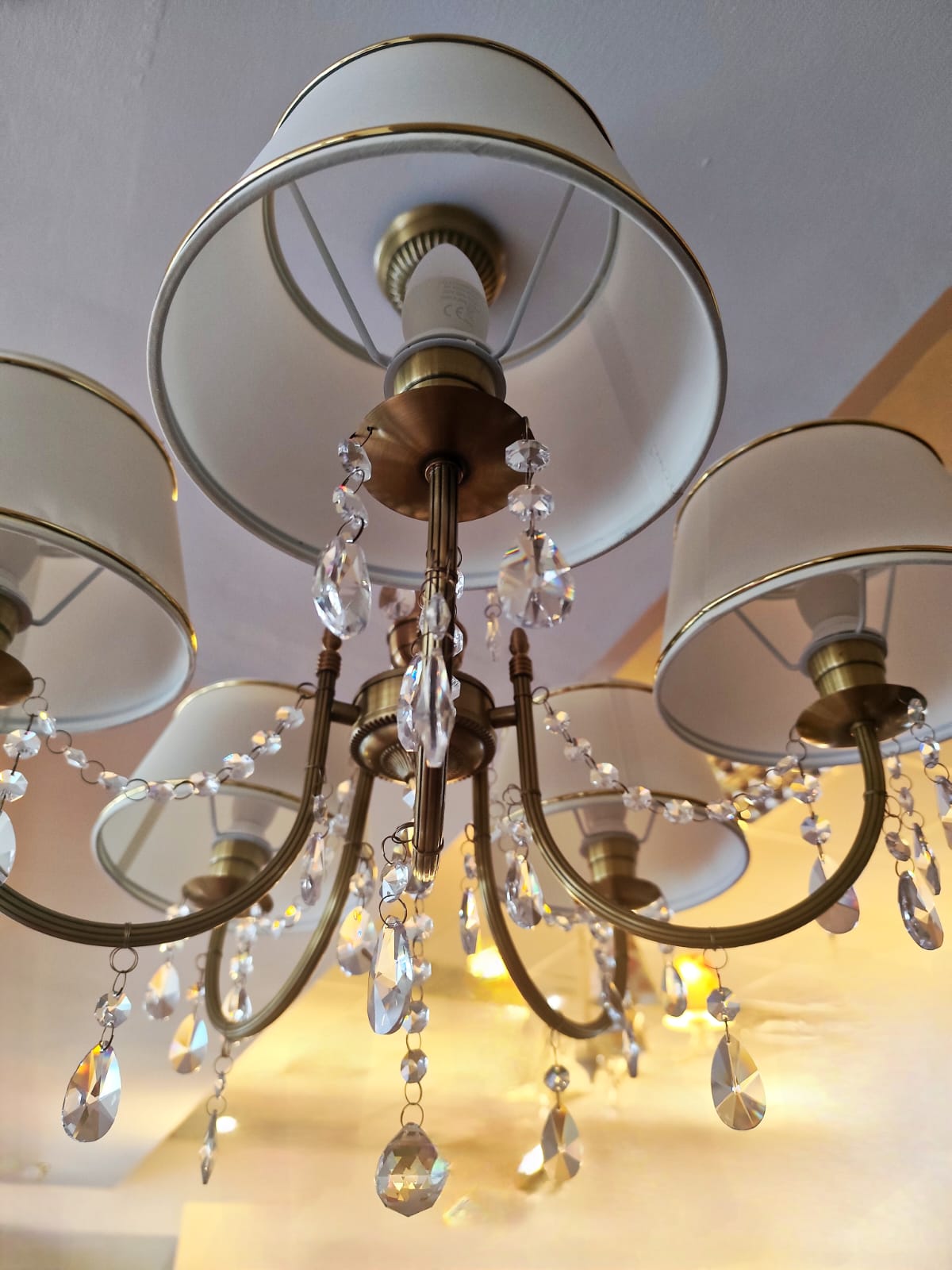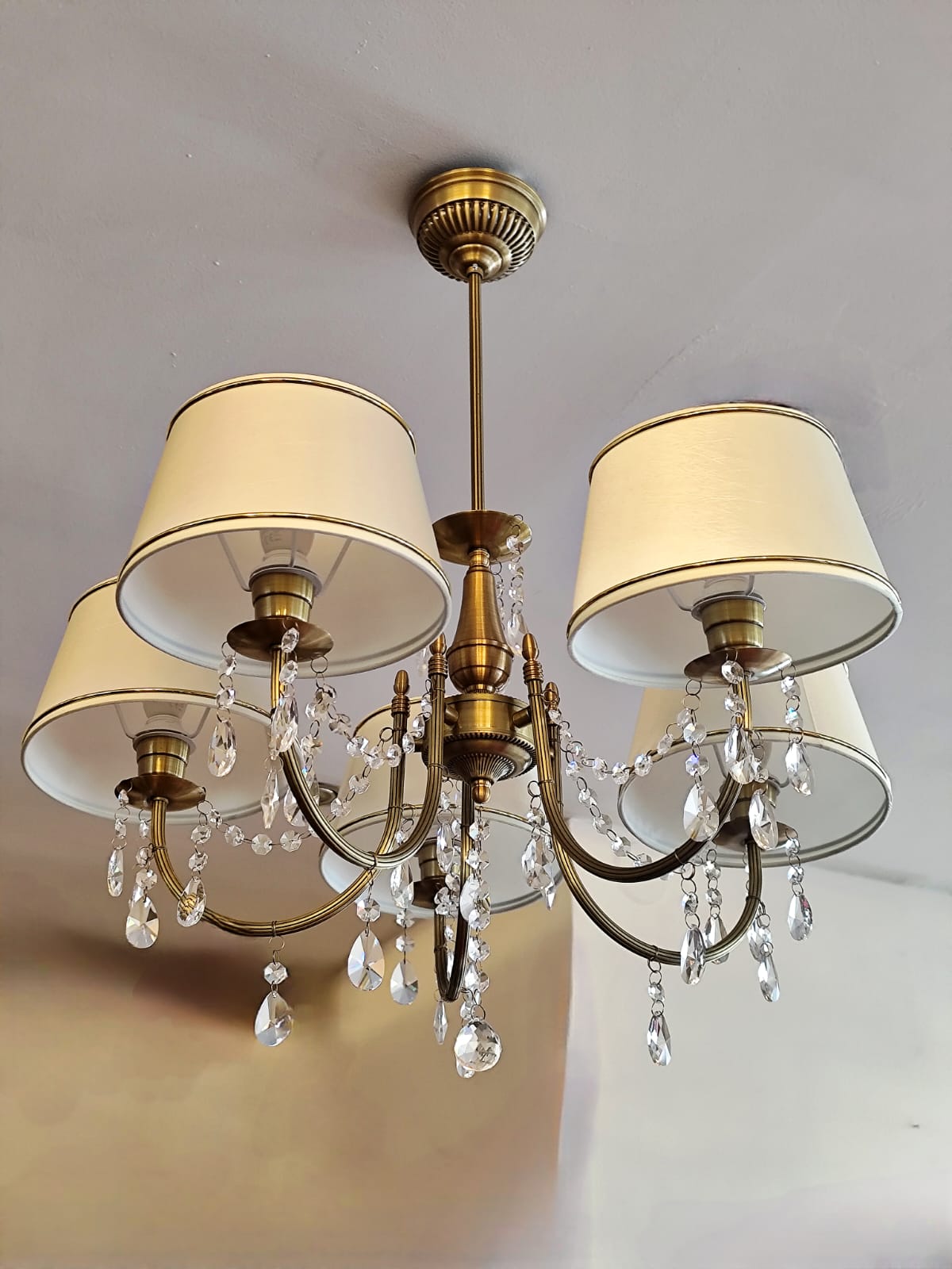 Ten pięcioramienny żyrandol zapewnia równomierne oświetlenie, co sprawia, że jest doskonałym źródłem światła zarówno do użytku codziennego, jak i do specjalnych okazji.