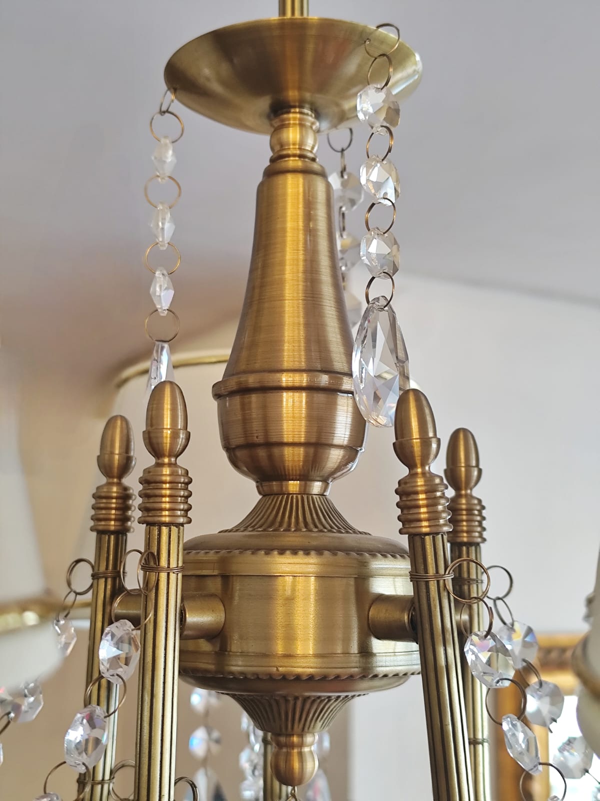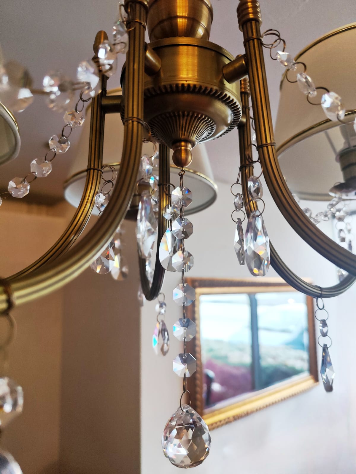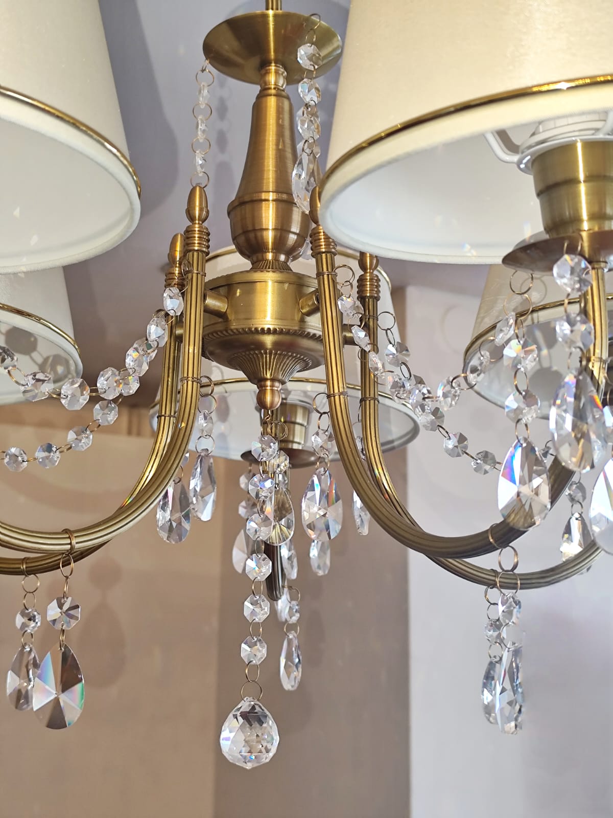 Jego mosiężne wykończenie, klosze i kryształki nadają mu ponadczasowego charakteru i sprawiają, że doskonale komponuje się z różnymi stylami aranżacji wnętrz. Żyrandol BN602 stanowi centralny punkt, przyciągając wzrok i nadając pomieszczeniu wyjątkowego charakteru.