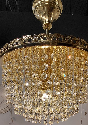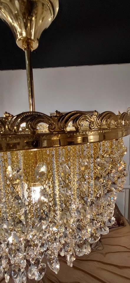 Żyrandol kryształowy– elegancja polerowanego mosiądzu i blask kryształu